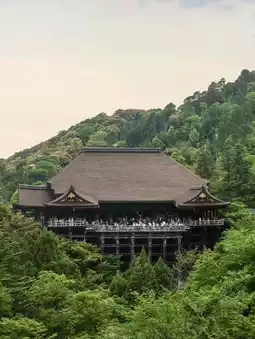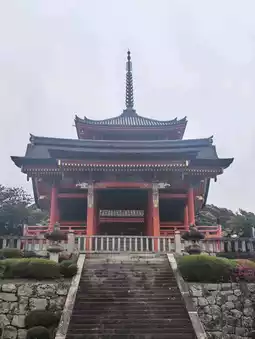 The highlight of the temple is its large wooden stage extending from the Main Hall, constructed entirely without nails and supported by wooden pillars over 13 meters high. This stage offers breathtaking views of Kyoto, especially during the spring and autumn seasons.