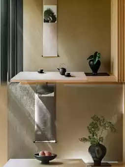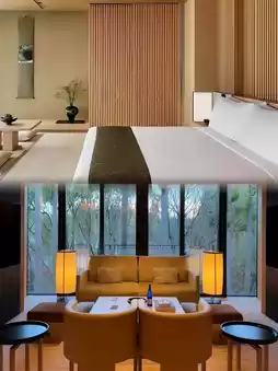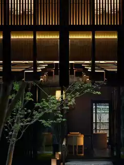 At Aman Kyoto, moss-covered pathways wind through interconnected courtyards. Everything here preserves nature's original beauty, evoking the poetic sentiment of "streamside flowers and Zen tranquility, facing each other in wordless harmony." Ancient rocks, tree-lined paths, falling maple leaves, and even passing monks seamlessly blend this modern architecture with its natural surroundings, creating a serene and profound atmosphere.