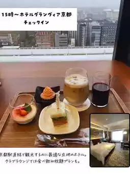 Depending on the plan, there’s an all-you-can-eat and drink lounge. The rooms offer great views of Kyoto Tower and the trains! Parking at the station building costs 2,000 yen for 24 hours.