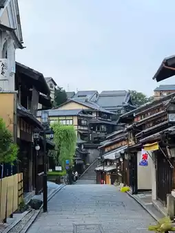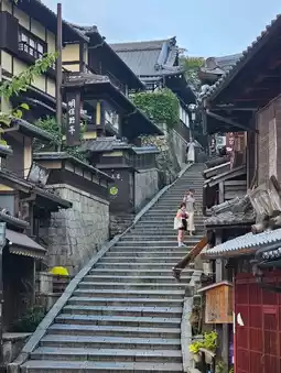 Walking here feels like stepping into a living postcard. The traditional facades, noren curtains swaying in the breeze, and the soft rhythm of footsteps on stone create a scene unchanged for centuries. The stairs themselves are a perfect photo spot, especially early in the morning or at golden hour when the light hits the rooftops just right.