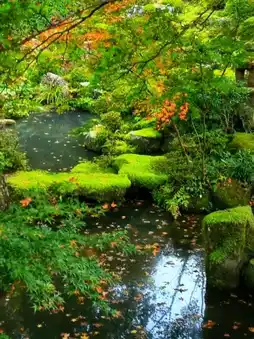 Sanzen-in is especially enchanting in autumn, when its gardens glow with red and gold maple leaves, and in spring, when cherry blossoms and fresh moss create a dreamlike atmosphere. Scattered throughout the grounds are whimsical warabe jizō (childlike stone statues), peeking through the moss and adding a playful charm.