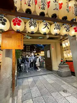 Located at the intersection of Kyoto's bustling Nishiki Market and Shinkyogoku Shopping Street, Nishiki Tenmangu Shrine boasts over 400 years of history. It primarily venerates Sugawara no Michizane, the deity of learning, making it a favorite among students and merchants.