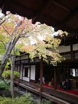 The gardens extending from the main hall offer a captivating beauty of "ma" (space). Simply sitting and gazing at the harmony of moss, stones, and sand can lighten your heart. Immerse yourself in the Zen world.