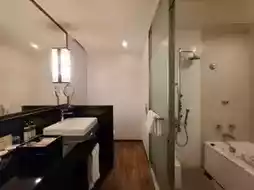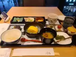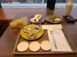 The bedding is exceptionally comfortable, ensuring a restful sleep. Check-out is conducted on the 2nd floor, and breakfast can be enjoyed at three different locations with four menu options. Instead of the buffet, I opted for a set meal.