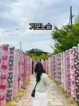 The colorful and colorful kimono-patterned pillars that fill the forest make you stop in your tracks.