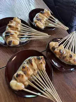 From there, take a taxi to Kazariya and have aburi mochi.