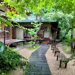 There are a few outdoor seats in the corridors. Order a cup of cold coffee and matcha tofu cake, sit on the mat, and look at the green scenery in front of you. It is even more poetic when it rains a little.