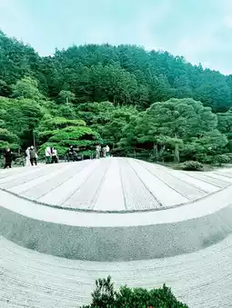 Ginkaku‑ji officially Jishō‑ji, is Kyoto's celebrated "Silver Pavilion," a Zen temple epitomizing the refined wabi‑sabi aesthetic and a UNESCO World Heritage site. Founded by shōgun Ashikaga Yoshimasa in 1482 as a retirement villa, later converted to a temple after his death in 1490 . The Silver Pavilion (Kannon‑den) features a shoin‑zukuri (residential style) ground floor and Zen Hall upper floor—planned for silver leaf that was never applied, symbolizing imperfect beauty . Sea of Silver Sand (Ginshadan): A vast dry-sand garden featuring the cone-shaped Kōgetsudai, symbolizing Mount Fuji and moonlight . Moss garden: Lush greenery around ponds and meandering paths, exemplifying serene Zen design .