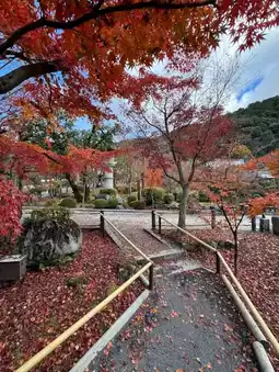 The temple is best known for its striking garden landscapes, which feature a harmonious blend of traditional architecture, moss-covered grounds, and a large pond. During the autumn season, the vibrant colors of Japanese maple trees attract visitors from around the world, making it a premier destination for fall foliage viewing. The temple’s famous Mikaeri Amida (Looking Back Amida) statue, a unique Buddha figure gazing over its shoulder, is another highlight, symbolizing compassion and care.