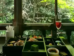 As if possessed, I followed the guide into the inner building and climbed the narrow stairs to be guided to the 2nd floor. The seat was set facing the window. In front of me, there was a view of green tree branches stretching out right before my eyes.