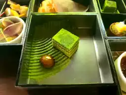 The matcha opera, which the manager in charge likes the most, is presented as a single tier, like a work of art, symbolizing the Karesansui garden. The taste of the coated chestnuts is also combined to convey the ultimate softness.