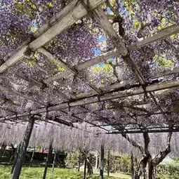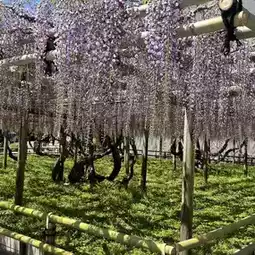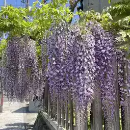 Where to see it: there are three large wisteria trellises in the temple grounds; the one by Aji-ike Pond is over 280 years old, with flower clusters over a meter long that nearly touch the water