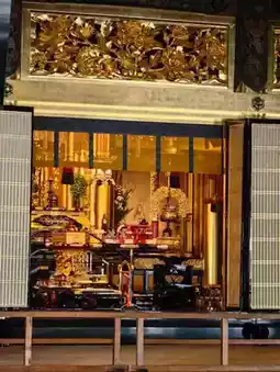 The highlight is the Goei-do Hall (rebuilt in 1636), which boasts 227 wooden pillars and is the world's largest wooden structure. A seated wooden statue of Shinran Shonin (Goshin-egi) is placed in the center of the inner sanctuary. The Amida-do Hall (rebuilt in 1760) boasts a majestic interior, richly decorated with gilded ornaments, a typical example of the Momoyama period's artistic style.