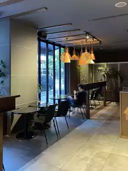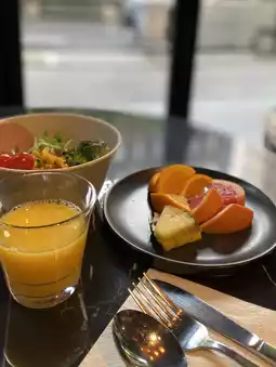 sequence KYOTO GOJO is a very comfortable hotel, but the restaurant on the first floor, THE TASTE, serves a luxurious breakfast that is open to both guests and non-guests. The salad buffet has stylish plates and lots of fresh vegetables. It is open from 7:00am to 12:00pm (last orders 11:30am) and offers a wide variety of luxurious salads, soups, fruits, and drinks. You can choose from four main dishes, including eggs Benedict, sandwiches, French toast, and plates, and they will deliver them to your table. ♡━━━━━━━━━━━━━━━━━ The plate I ordered was freshly made with sausages, fried eggs, rye toast, a small bowl of beans, bacon, and sauteed mushrooms, and it was delicious. ♡━━━━━━━━━━━━━━━━━ This place is also popular as a bar and restaurant in the evening. The comfortable sofas and the DJ's music and lighting made for a very stylish space.