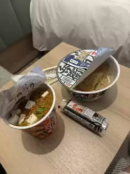 I bought Kitsune Udon and Salmon Mayo Gimbap at Lawson,