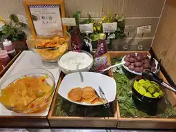 The large public bath is open until 1:00 AM, making it suitable for late arrivals. The large public bath is located on the second floor. Towels are provided, but no bath towels are available. There are only about 10 toilet stalls and only four hairdryers, so it's best to avoid crowds if you wish to use it. The breakfast area offers free and takeaway beverages after breakfast, including a variety of coffees and soft drinks. It's open from 2:00 PM to 10:00 PM, making it very welcoming.