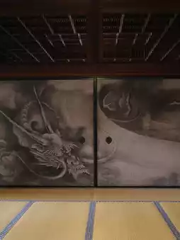 The most famous are Tawaraya Sotatsu's "Wind God and Thunder God Screen" (replica on display) and the "Two Dragons" painted on the ceiling of the lecture hall🐉🐉