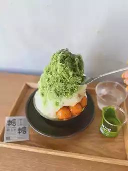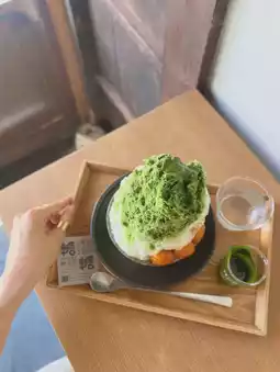you'll find shaved ice with mizore syrup and matcha ice cream😍🙌