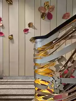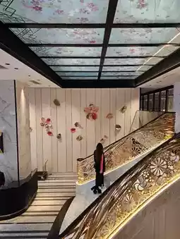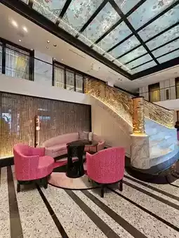 🎨 The interior design combines the brand's signature colors of pink, black, and gold with Japanese elements such as bamboo, washi paper, and cherry blossoms, blended with Art Deco style to create a vibrant atmosphere in the lobby and guest rooms.