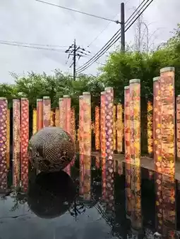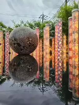 An outdoor art corridor featuring approximately 600 poles adorned with Kyoto-style Yuzen patterns