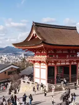 One of the most iconic spots of Kiyomizu-dera, this wooden stage is built on a cliff, offering a panoramic view of Kyoto city. Whether it's cherry blossoms in spring or vibrant autumn leaves, this is the perfect spot for breathtaking views. Don't forget to bring your camera to capture the beauty of the moment! 📸✨