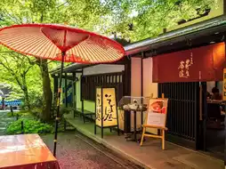 Seryojaya (清涼茶屋) is a Japanese restaurant located in the Arashiyama district of Kyoto. The restaurant is known for its peaceful atmosphere and traditional Japanese cuisine, particularly dishes featuring Yudofu (a Kyoto specialty). It is also renowned for its beautiful scenery, especially in autumn.