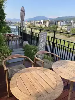 Enjoy views of the Kamo River from your room and the rooftop garden!