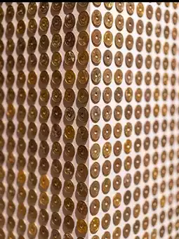 Concept: A golden wall of 5-yen coins. The 5-yen coin serves as a symbol of faith at shrines and temples. Ohira created a room in Kyoto, a city famous for its many shrines and temples, where the 5-yen coin and "fate" are connected. Ohira hopes to foster connections with past, present, and future guests and add to the hotel's history.