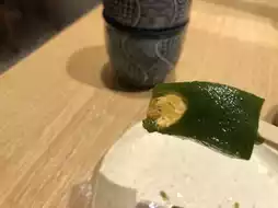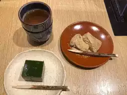 The seasonal yokan "Sasahotaru" that I had for dessert was refreshing and delicious with its matcha bean paste and roasted green tea agar 😋