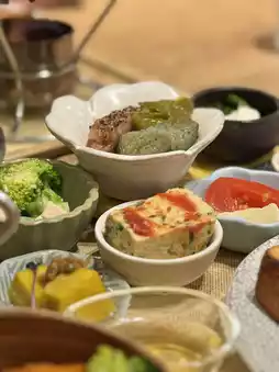 The side dishes featured Kyoto-style elements like raw wheat gluten, shira-ae (mashed tofu salad), and honey chicken, blending traditional and creative flavors beautifully☺️. Among them, the shibazuke potato salad stood out with its fresh and unique taste👏💗.