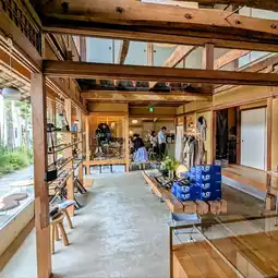 Don't be afraid; just walk in for a bowl of shaved ice, a drink, and some cool air conditioning. The bamboo fence outside the Snow Peak Arashiyama landstation creates a barrier, offering a tranquil retreat even on the main road.