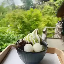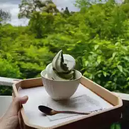 Ambience/Location - The atmosphere is great. I love the terrace and tables, which offer a beautiful view of the natural surroundings. The weather is perfect. There was a long wait when I went because tables were full, but it wasn't long. I ordered some matcha ice cream, which was delicious.