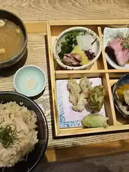 Of course, no trip is complete without food 🍴. This time, I tried Kyoto-style Kaiseki cuisine, a beautifully arranged meal featuring seasonal ingredients. The photo showcases fragrant bamboo shoot rice, warm miso soup, vegetable tempura, seasonal fish, and tender beef dishes ✨. Each small dish is filled with the essence of the season and meticulous care, making it truly special. It was a moment where I could fully savor the traditional flavors of Japan. 😋💛