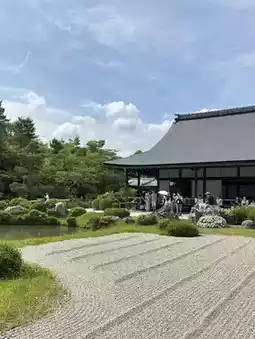In the afternoon, I sat quietly in front of the Dharma Hall of Tenryuji Temple, letting the sunlight stream through the eaves, dappling the stone pavement. In the distance, a monk swept the floor, the sound of sweeping leaves blending with the melodious chirping of birds. I closed my eyes and let my breath merge with the surrounding air. At this moment, I felt as if I were a drop of water or a wisp of wind beneath the eaves, clinging to nothing, seeking nothing. It turns out that "seeing the eaves" can actually be a meditation. Beneath the towering five-story pagoda of Toji Temple, the soaring eaves resemble eagle wings, slicing the sky with their own unspokenness. The overlapping lines of the black tiles resemble the mandala of a vajra, layer upon layer, a gesture of both protection and enlightenment. As sunlight streams down, the shadows of the brackets cast across the white walls like an ink wash, silently captivating the heart.