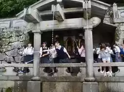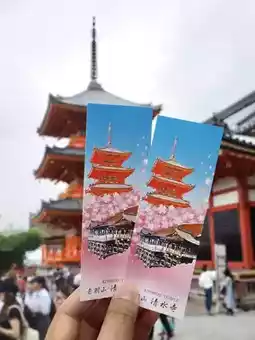 The large wooden terrace juts out from the cliff face offers panoramic views of Kyoto and the surrounding mountains.