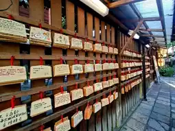 This Shinto shrine enshrines Tenjin, or Sugawara no Michizane, the god of learning and education.