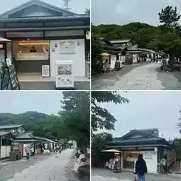 Togetsukyo Bridge is a must-see landmark in Arashiyama. It offers stunning views of the natural surroundings, with a backdrop of lush green mountains and a river below. The riverside is lined with shops and food vendors.