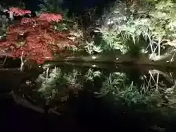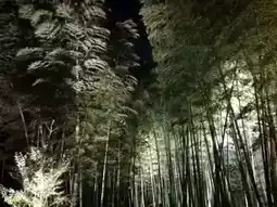 The bamboo forest beside the pond takes on a tranquil atmosphere at night, creating a striking contrast with the crimson leaves. Experience Kyoto's uniquely Zen-like atmosphere, perfect for those seeking spiritual relaxation.