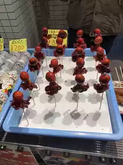 If you're in Kyoto, you should visit Nishiki Market. It was famous as a wholesale fish market during the Edo period, and developed into the "Kitchen of Kyoto" during the Showa era. This historic shopping street in Kyoto sells a variety of Kyoto-style ingredients, pickles, processed foods, and fresh seafood, as well as plenty of souvenirs. I tried a few snacks here, but they seemed okay, not particularly delicious. I recommend just strolling around. 😌