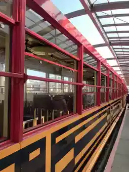 A must-try when visiting Kyoto is the Arashiyama Train, also known as the Sagano Sightseeing Train. This scenic railway runs along the Hozugawa River valley, departing from Saga Station, next to JR SagaArashiyama Station. Along the way, you'll enjoy breathtaking mountain and water views and the changing beauty of the seasons. This train features nostalgic carriages, artistic Art Deco styling, and the "Fuki" open-air carriages, offering a unique and unconventional experience. The train itself is a converted old freight car, and the interior, featuring wooden seats and exposed light bulbs, exudes a retro, nostalgic atmosphere. I really like it.