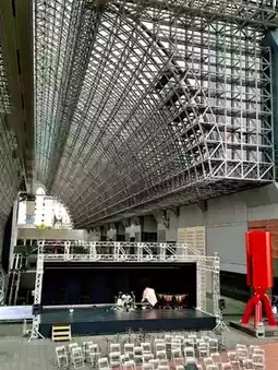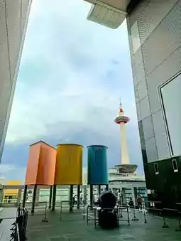 There is an open-air observation deck on the top floor of the station building, accessible by escalator or stairs. There is also a garden offering panoramic views of Kyoto Tower.