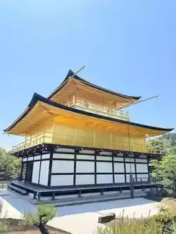 The three-tiered structure showcases a blend of architectural styles: the first floor features the Shinden style, the second floor adopts the Buke style, and the third floor is a Zen Buddhist hall. Each level is adorned with gold leaf, and the phoenix atop the roof glistens brilliantly under the sun. 🕊️ Surrounded by pine trees, the scenery changes with the seasons—cherry blossoms gently brushing against the golden facade in spring, fiery red maples complementing it in autumn, and snow blanketing the roof in winter, creating a divine interplay of gold and white. ❄️🌸