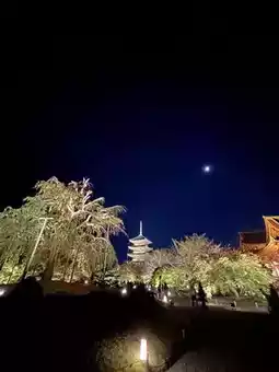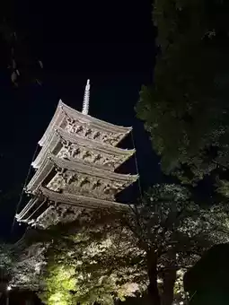 When you visit Toji Temple at night, the five-story pagoda is bathed in a quiet glow, creating an atmosphere where time seems to stand still.