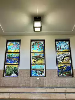 The grand facade and stained glass windows make this landmark truly special. The glass panels are said to depict the four seasons of Kyoto, casting soft, colorful light across the hall — a quiet reminder of the city’s timeless beauty.