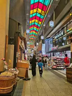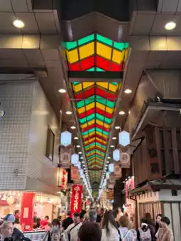 The market's roof is covered, making it easy to browse even on rainy days, but the narrow passageways can be a bit crowded during peak times. Each shop is well-maintained and sanitary, and the staff speak simple English, making it a comfortable stop for foreign visitors. Overall, this is a place where you can experience Kyoto's everyday life, where tradition and modernity coexist, and is a must-visit for foodies. 🥢