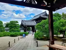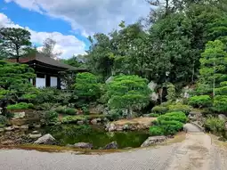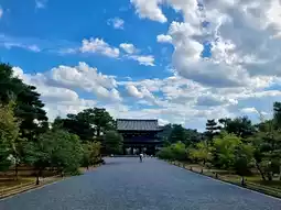 The temple was once destroyed during the Onin War (1467–1477) but was rebuilt in the 17th century with the strong support of the Tokugawa shogunate. Most of the existing main structures date back to the early 17th century. Ninna-ji features attractions such as the Five-Story Pagoda, the Golden Hall (Kondo), the Nio Gate (Nio-mon), and the Omuro cherry blossoms, which are known to bloom later than other cherry blossoms in Kyoto. The expansive grounds also include walking paths and traditional Japanese gardens, offering a serene and tranquil atmosphere.