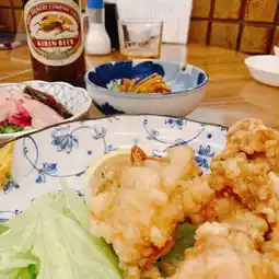 A shared table where you can drink from noon and eat snacks, with customers of all ages and genders