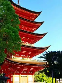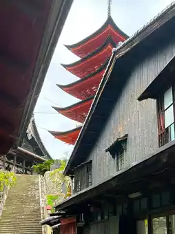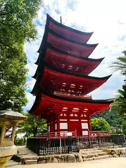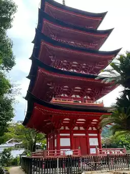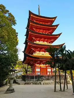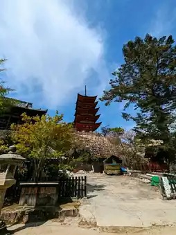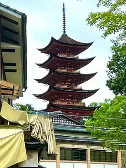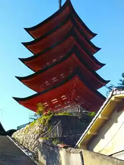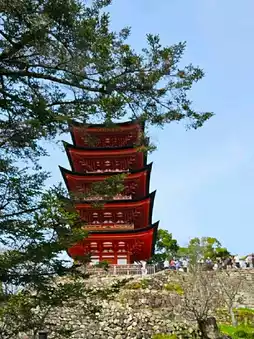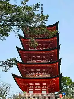 Situated atop a hill, it is considered part of Itsukushima Shrine and is accompanied by the Senjokaku hall.