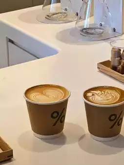 Located midway along Kyoto's Ninenzaka Street, you'll find the % Arabica Ninenzaka branch with its distinctive white % logo. Conveniently situated on the way to Kiyomizu-dera, it's an easy stop during your sightseeing.