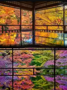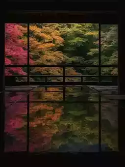 2️⃣ Rurikoin Temple: Through the black lacquered wooden table, you can see the reflection of the autumn leaves on the surface, complementing the maples on the trees.